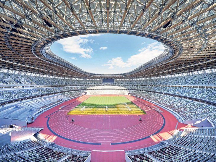 टाेकियाे : जपानमध्ये पुढील वर्षी हाेणाऱ्या टाेकियाे ऑलिम्पिकचे मुख्य स्टेडियम तयार झाले आहे. यात ८६ % लाकडाचा उपयाेग केला आहे. २००० घनमीटर देवदारच्या लाकडाचा वापर केला आहे. ही लाकडे २०११ च्या सुनामीमध्ये उद्ध्वस्त झालेल्या ४७ प्रांतातल्या जंगलातून आणण्यात आली आहेत. प्रेक्षक निसर्गाच्या सान्निध्यात राहावेत व त्यांना गर्मी हाेऊ नये असा उद्देश आहे. त्यासाठी येथे १८५ माेठे पंखे व ८ ठिकाणी कुलिंग नाेझलही लावले आहेत. ५ मजली स्टेडियम बांधण्यासाठी अंदाजे १० हजार काेटी रुपये खर्च आला. येथे ६० हजार प्रेक्षक बसू शकतील.