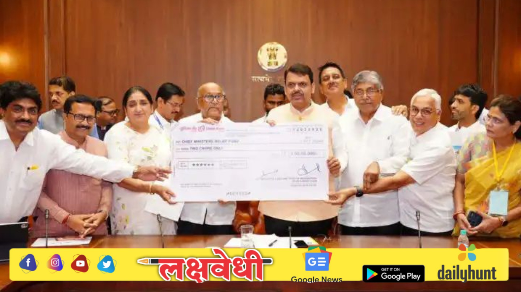 अतिवृष्टीग्रस्त शेतकरी बांधवांसाठी २ कोटींची मदत; मुख्यमंत्री देवेंद्र फडणवीस यांना निधी सुपूर्त