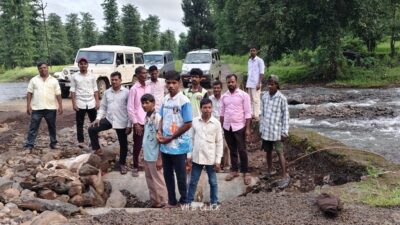 माडविहरा-हुंबरण रस्त्यावर श्रमदानातून तात्पुरत्या पुलाची उभारणी