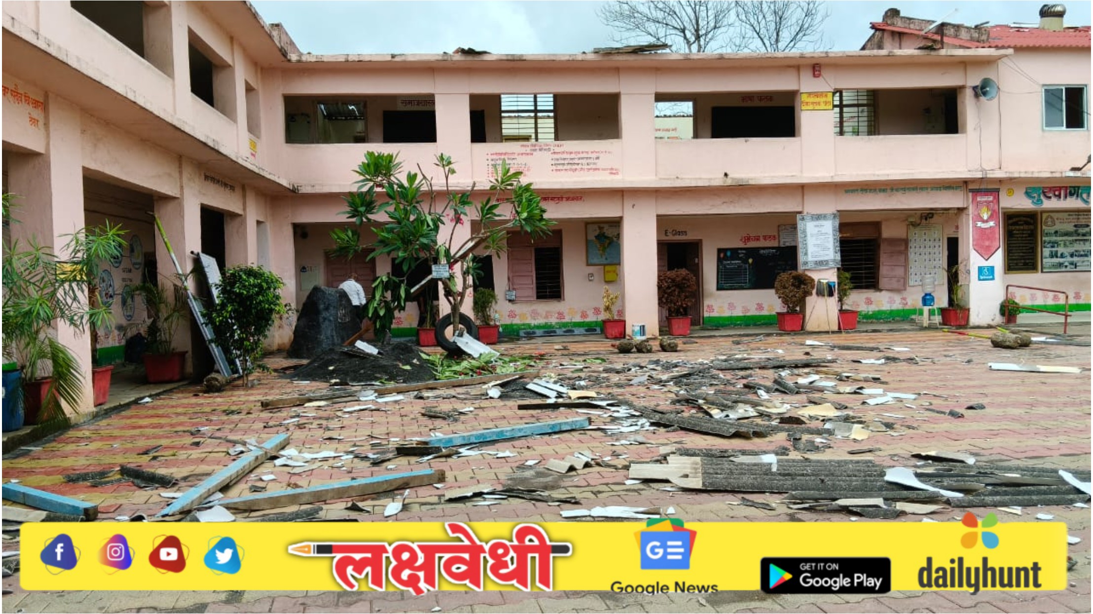 वादळ आणि पावसाने शाळेच्या खोल्यांचे पत्रे उडाले. वर्गातील बेंच, खिडक्या, इलेक्ट्रिक साहित्य तसेच इलेक्ट्रॉनिक साहित्याचे नुकसान झाले असून शाळा येत्या 16 जून रोजी सुरू होण्याच्या दोन दिवस आधी शाळेवर नैसर्गिक आपत्ती कोसळल्याने शिक्षक व पालक वर्गातून चिंता व्यक्त करण्यात येत आहे.दरम्यान पहिल्याच मोसमी पावसात आलेल्या वादळाने छताचे पत्रे उडून नुकसान झाले. आता एका दिवसात चार वर्गांची दुरुस्ती करून, तिथे वर्ग कसे भरवणार, असा प्रश्न उपस्थित होत आहे. शाळा सुरू होण्याच्या दिवशीच विद्यार्थ्यांच्या बसण्याच्या जागेचा प्रश्न निर्माण होणार आहे.